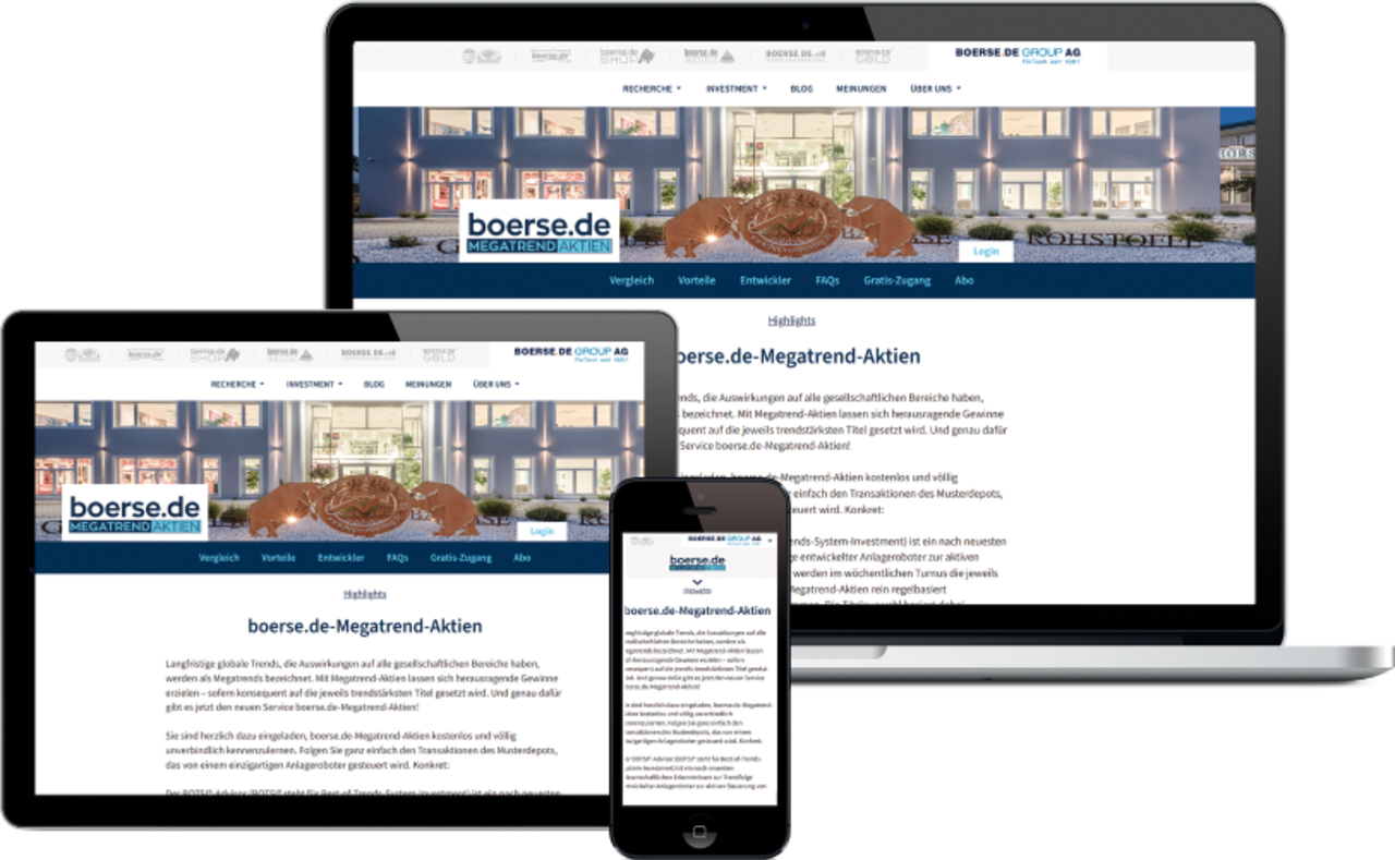 Zusätzlich erhalten Abonnenten der boerse.de-Megatrend-Aktien per E-Mail den boerse.de-Aktienbrief, Deutschlands großen Börsenbrief, kostenlos.