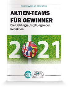 Pünktlich zum Start der Fußball-Europameisterschaft 2021 am 11. Juni erscheint der Sonderreport „Aktien-Teams für Gewinner“. Seit der WM 2014 hat es sich das Rosenheimer Börsen-Team zur Tradition gemacht, zu jeder EM bzw. WM seine persönlichen Anlage-Favoriten als Fußballmannschaft darzustellen. Denn: